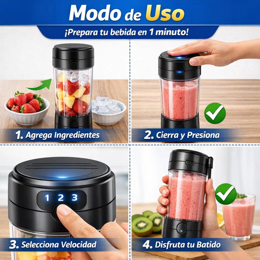 Licuadora Portátil Premium – Batidos Listos en 1 Minuto, Donde Quieras